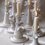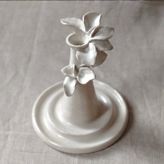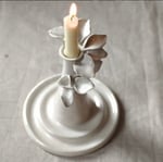 Candelabro de gres realizado en torno de alfarero y decorado a mano con motivos vegetales.