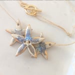Colgante de gres de alta temperatura. Esmaltado a mano y decorado con lustre de oro.