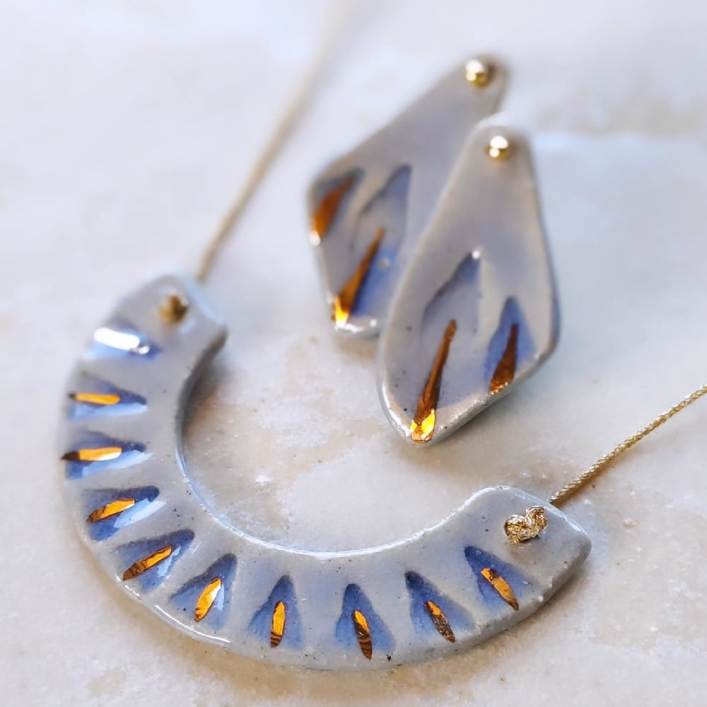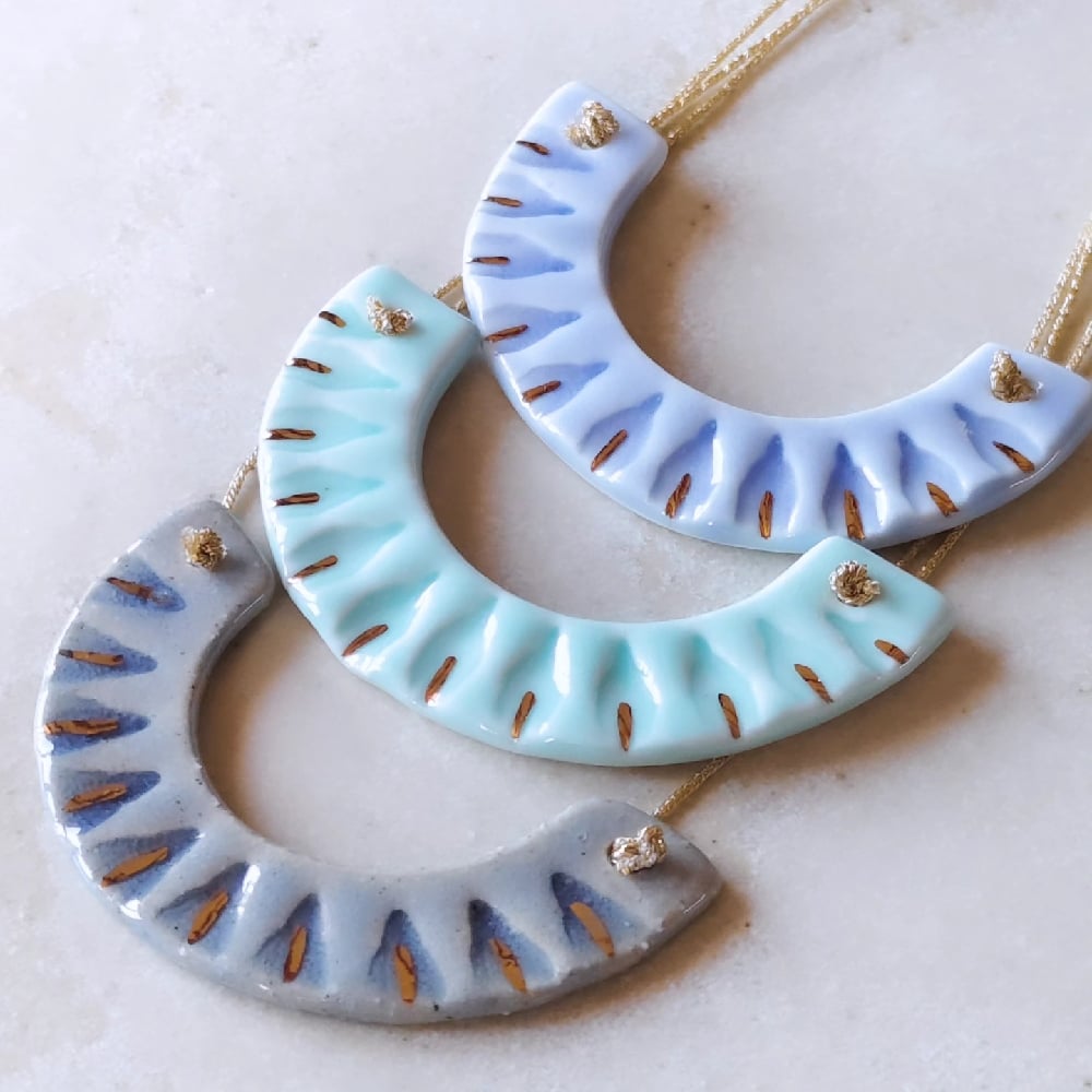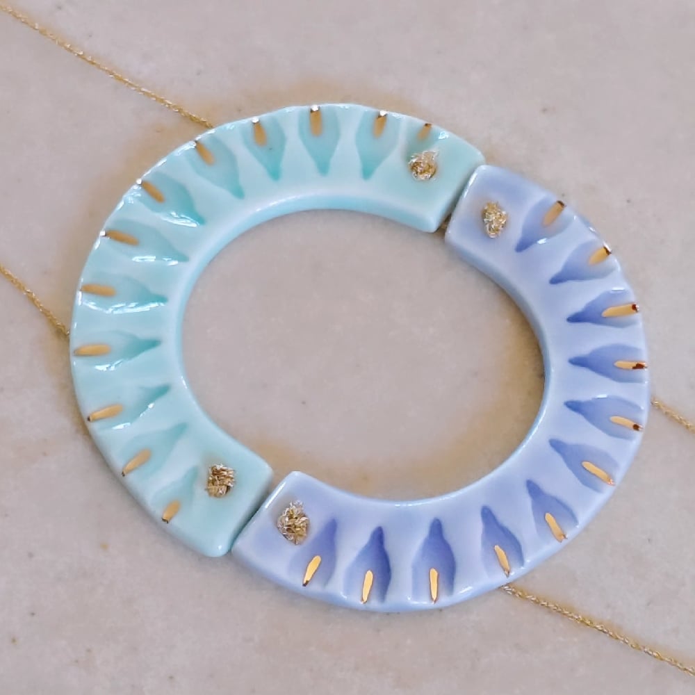 Colgante de porcelana o gres esmaltado y cocido con la energía del Sol.