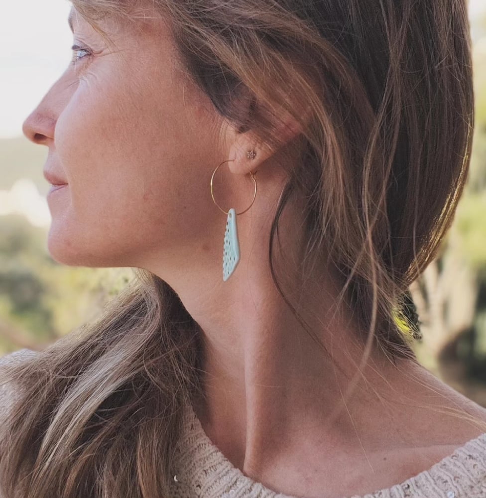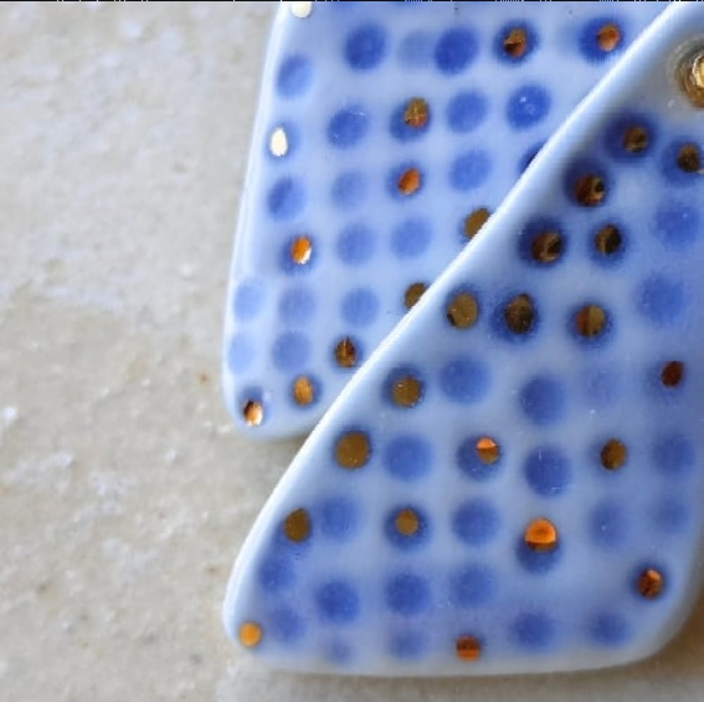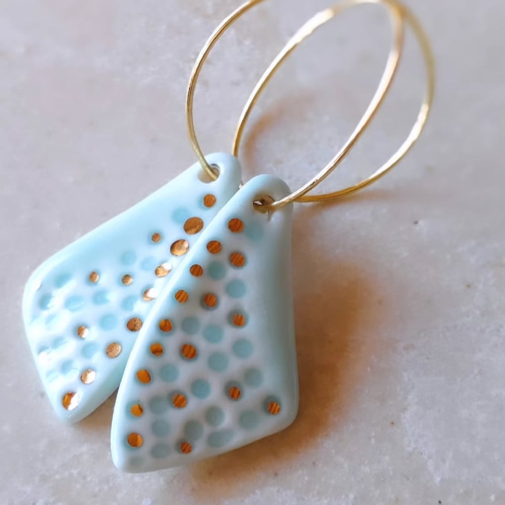 Pendientes de porcelana o gres esmaltado y cocido con la energía del Sol.